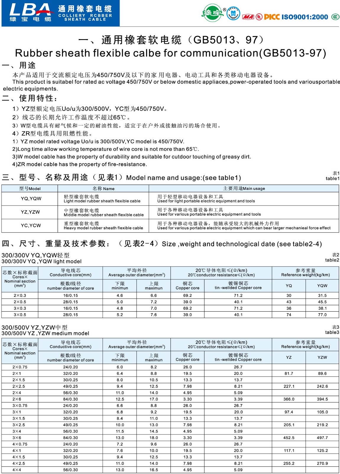 通用橡套電纜